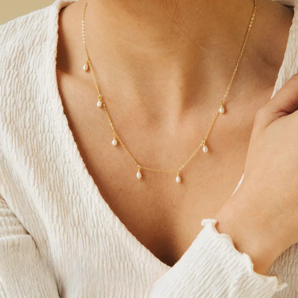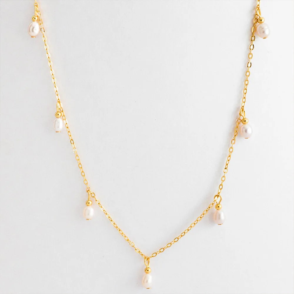 Imitation Pearl Tassel Necklace – 14K Gold Plated on Stainless Steel