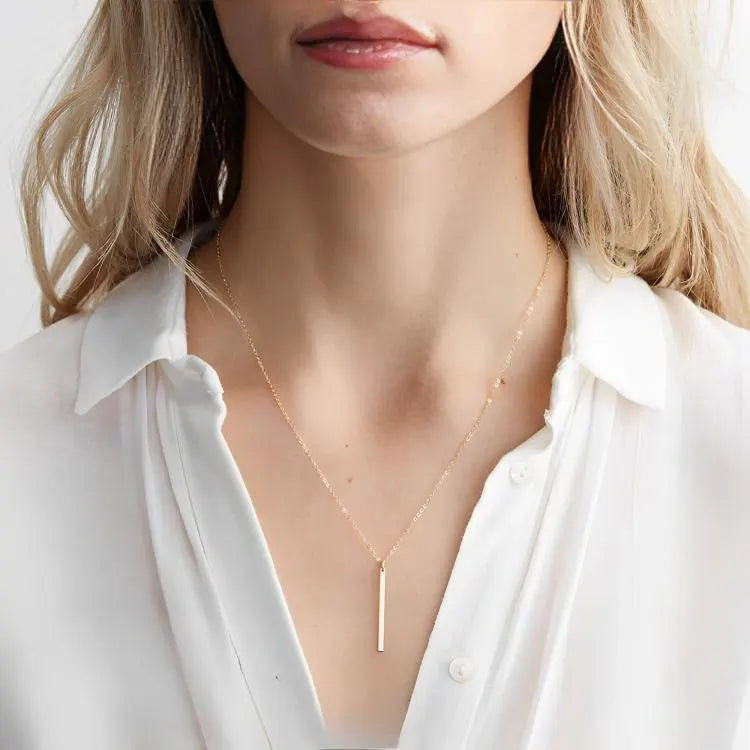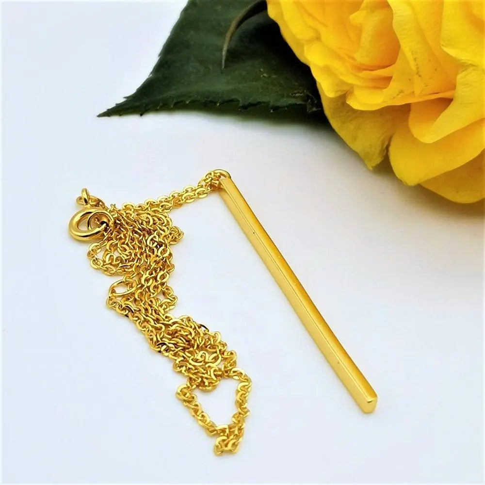 Vertical Bar Pendant Necklace – 14K Gold Plated on 316L Stainless Steel